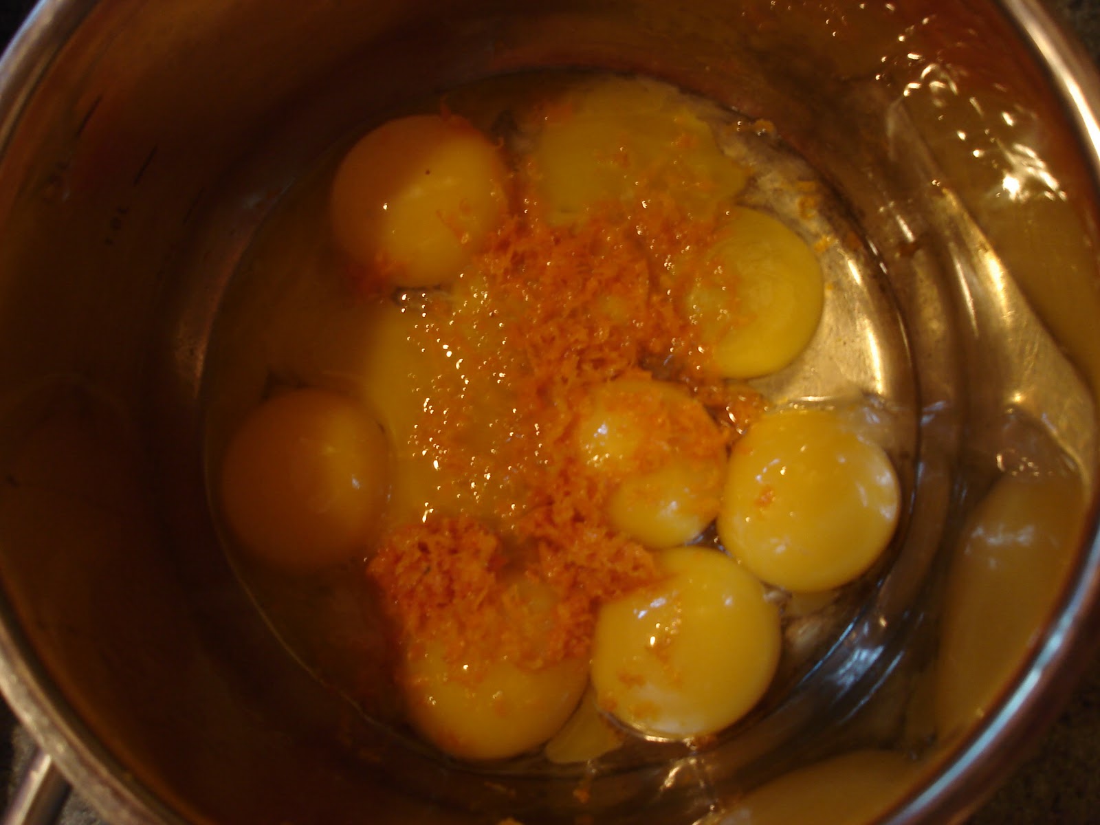 5. Add the beaten eggs, yeast mixture, melted butter, and 2 cups (480 ml/280 gm/10 oz) of flour.
